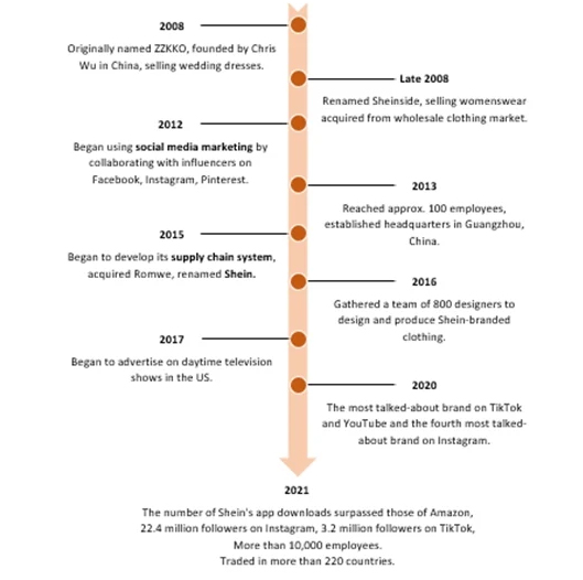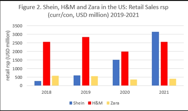 اگرچه در شرایط واقعی، فروش شین در سال 2020 به کمتر از نیمی از ارقام زارا رسید، رشد فوق العاده و به ظاهر غیرقابل توقف آن، این برند را به تهدیدی واقعی برای سایر برندهای مد سریع تبدیل کرده است (شکل 2).