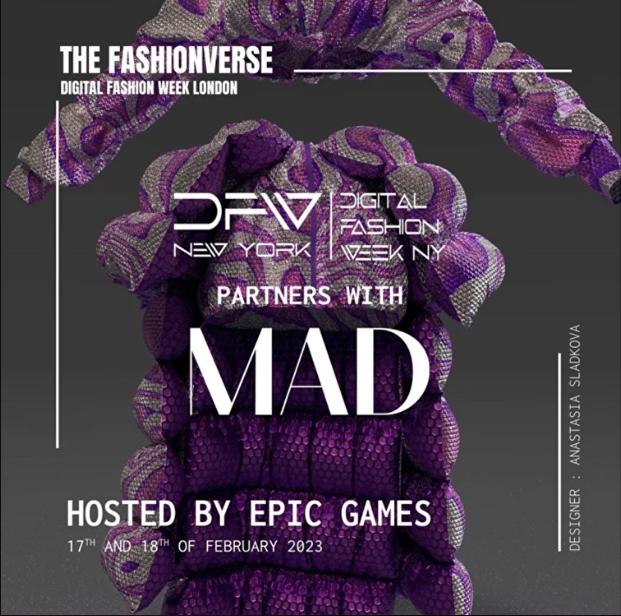 Digital Fashion Week NY و MAD Global برای میزبانی از هفته مد دیجیتال، یک رویداد دو روزه مد فیگیتال، با یکدیگر همکاری می کنند که تجربیات ملموس و غیرمادی را ارائه می دهد که مد را به مردم و مردم را به مد به روشی جدید و هیجان انگیز در طول هفته مد لندن در لندن متصل می کند. فوریه 2023.