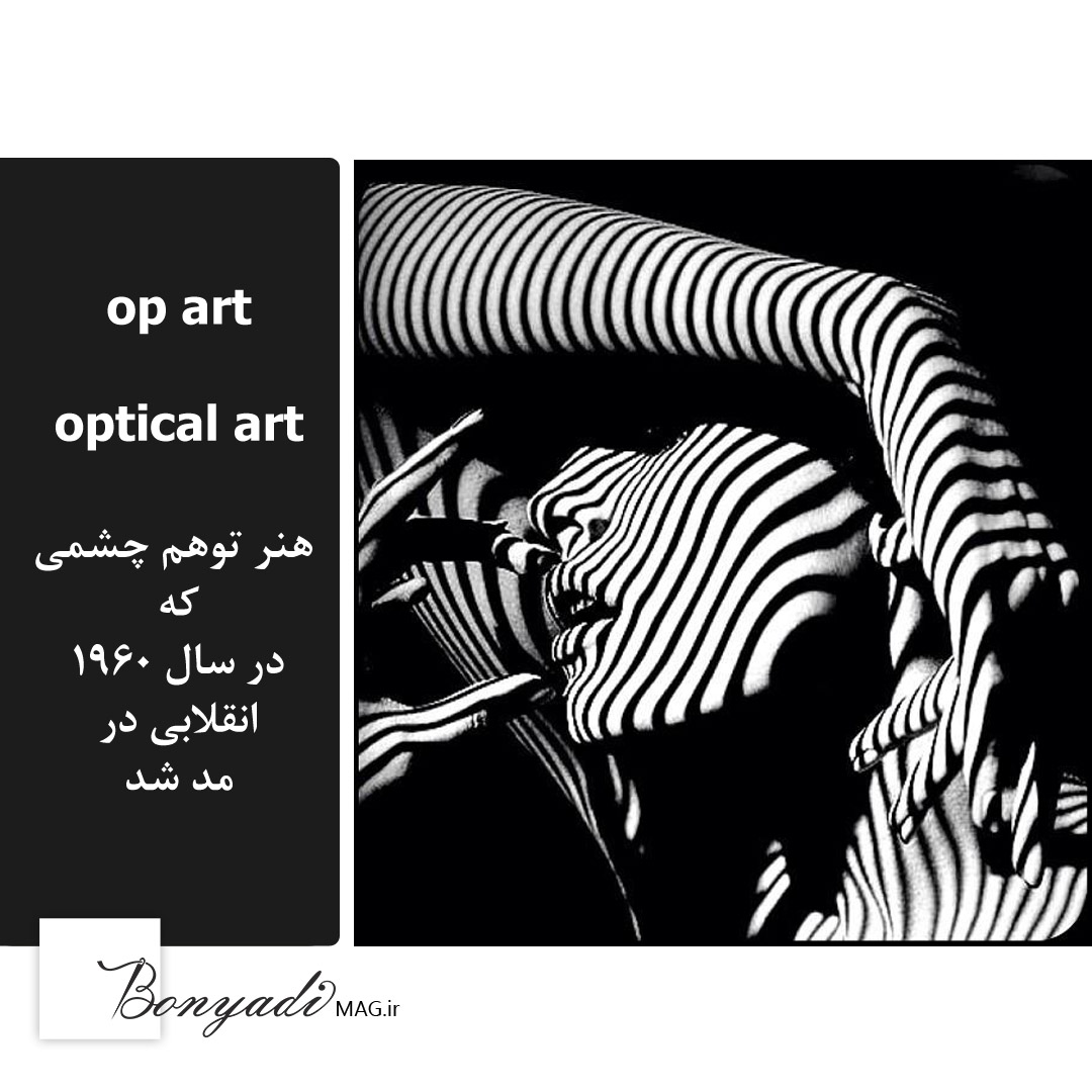 اصطلاح هنر OP به عنوان یک هنر متشکل از توهم و فریب دادن ذهن شناخته شده است ، به دلیل ترکیبات مبتنی بر ریاضی است و با استفاده از رنگ ها و اشکال متضاد ساخته می شود . این هنر در حال حرکت با و حتی نفس کشیدن است و بسیار پشیرفته شده است .