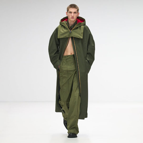 And Sunday’s show offered some explanations. Focusing on geometry and shape and made in strong primary colors, the collection underlined key drivers of K-Way resurgence