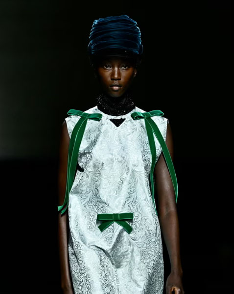 این مجموعه همچنین روشن کرد که عشق فعلی کمان - که در این چند وقت اخیر بر سر، کیف و قلب ها تسخیر شده است - راه به جایی نمی برد. آنها در طیفی از ظاهر ظاهر میشدند – به اندازه کمی در خط کمر بسته شده بودند، به دلیل عملکرد سر تکان میدادند، یا برای تزیین لباسهای بدون هیچ هدف مشخصی به جز تزئین بسیار دوستداشتنی استفاده میشدند. «کلیشههای زنانگی - کمانها، تزیینها، رفلکسها - مورد بازنگری قرار میگیرند و معنای آنها اساساً ارزیابی میشود. چرا اصرار می کنند؟ چرا جذب میکنند؟» نت های نمایش می گویند.