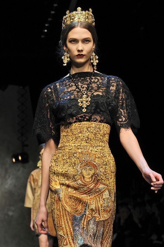 به دلیل اهمیت و ضرورت نمایش قدرت از سوی کلیسا و برای نمایش این موضوعات هنرمندان کاشی کار و شیشه ساز تابلو های از جنس کاشی در ابعادی بسیار بزرگ و شیشه کاری هایی در ابعاد 4 تا 5 متر برای شیشه های کلسیا و روایت کردن داستان های کتاب مقدس در آنها این سبک را بوجود آوردند که طراحان لباس معاصر و برخی از هنرمندان طراحی لباس در همین دوره ها از این سبک هنر الهامات بسیاری را برداشت نمود و در طراحی مد بکار گرفته اند .