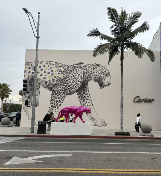 یکی دیگر از بازیگران کلیدی در «منطقه جواهرات»، خانه مد فرانسوی کارتیه، ماههاست که پلنگ عظیم خود را به جای بوتیک آینده خود به نمایش گذاشته است. پس از ماهها انتظار، این شرکت در اوایل ماه مارس از کمیسیون برنامهریزی بورلی هیلز برای ساخت یک ساختمان سه طبقه در خیابان ۳۷۰ شمالی رودئو، مجوز دریافت کرد.
