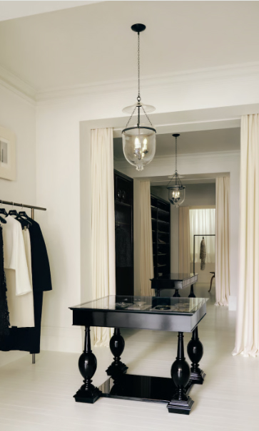 تزئینات برنجی قدیمی، از نردهها و آینهها گرفته تا چراغها، برای افزودن گرما به پالت تک رنگ در نظر گرفته شدهاند.
