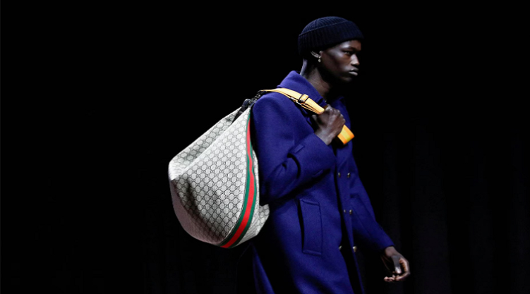 یک مدل محصولی را در نمایشگاه لباس مردانه پاییز/زمستان 2023/2024 گوچی در میلان، ایتالیا در 13 ژانویه 2023 ارائه میکند.