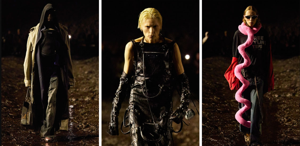 ایده تازه برند بالینسیگا یکی از این ایده ها بوده است که با ایجاد چطور واقعا متفاوت و ناخوشایند در یک محیطی که دست ساز ایجاد کرده و مقدار زیادی لجن و گل زغال را از یکی از معادن حومه پاریس برای ساخت صحنه اجرای کالکشن آورده و روی زمین و تمام دیوار های محل برگزاری کت واک ریخته و در میان این باطلاق لجن مسیری گود حفر کرده تا مدل ها از آن عبور کنند و همچنین به همه مدعوین هم این نکته را گوشزد کرده که در این کت واک گلی میشوید .
