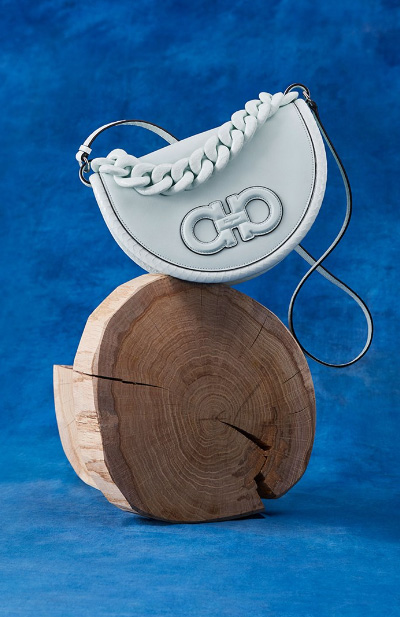 با ظاهری بسیار متفاوت و جذاب و در عین حال غیررسمی، قابل تشخیص ترین ویژگی Ferragamo Aura، زنجیر پوشیده شده از الافه بزرگ و الهام گرفته از سراجی است. مطابق با تزئینات کیف، پوست مار حسی از تجمل به ظاهر می بخشد.