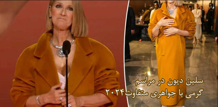 سلین دیون در مراسم گرمی 2024 با لباس والنتینو کوتور حضور غافلگیرکننده ای داشت تا جایزه بهترین آلبوم سال را به تیلور سویفت اهدا کند.