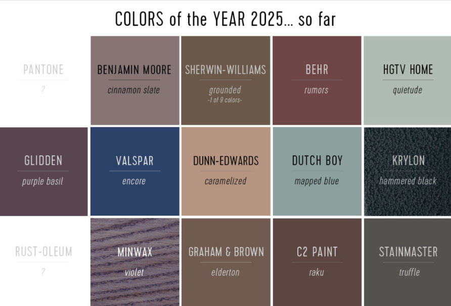 برندهای اصلی رنگ و رنگ شروع به اعلام روندهای رنگی پیش بینی شده خود برای سال 2025 کرده اند. به عنوان یک متخصص رنگ، اعلامیه های سالانه رنگ سال (COTY) را جذاب می دانم، زیرا بینش هایی را در مورد مسیرهای طراحی آینده ارائه می دهند. و، همیشه یک بازی سرگرم کننده است که ببینید آیا با پیش بینی های آنها موافق هستید یا خیر.