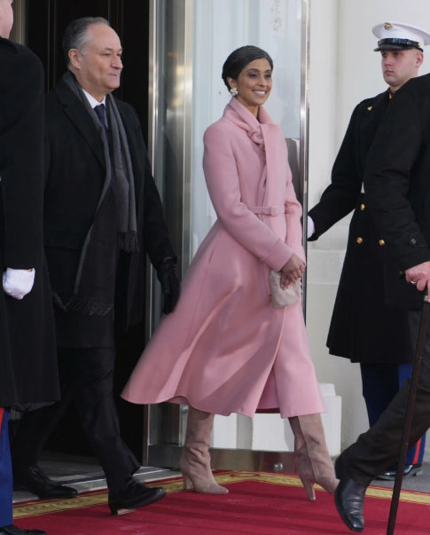 در همین حال، اوشا ونس، همسر معاون رئیس جمهور منتخب جی. بانوی دوم یک کت ترمه گل صد تومانی سفارشی با روسری و لباسی به اندازه چای به تن داشت.