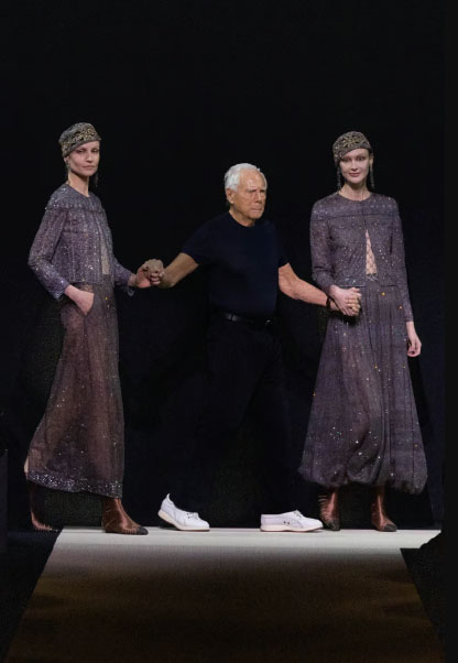 جای تعجب نیست که آرمانی دوباره مورد تشویق ایستاده قرار گرفت. او که درسو اوزالا واقعی مد ایتالیایی است، مشهورترین طراح این کشور با 90 سال سن و همچنان قوی است.