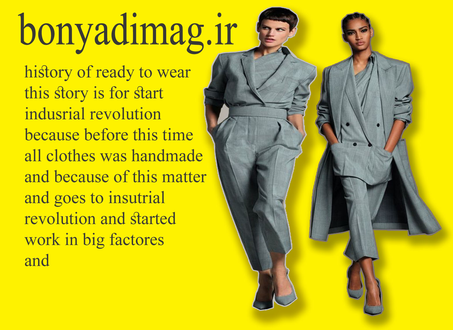 یونیفرم های نظامی آماده به صورت انبوه در طول جنگ 1812 در ایالات متحده تولید شد. لباسهای آماده برای پوشیدن مردانه با کیفیت بالا به زودی پس از آن به طور کلی در دسترس قرار گرفت، زیرا برشهای نسبتاً ساده، چاپلوس و رنگهای خاموش مد معاصر، اندازههای متناسب را در تولید انبوه ممکن میسازد.