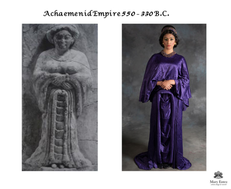 دوره صفویه (907-1135/1502-1722). لباسهای صفوی در قرن شانزدهم را میتوان بهطور کلی شامل لباسهای لایهبندی در مواد مجلل توصیف کرد که نزدیک نیم تنه بریده میشد و سپس به صورت خطوط گشاد و روان پخش میشد و با انواع سرپوش، جواهرات، زیورآلات و لوازم جانبی پوشیده میشد. همانطور که ژان شاردن (ص 50) یک قرن بعد اظهار داشت، پس از مشاهده ردای تیمور (771-807/1370-1405) که در کمد لباس سلطنتی نگهداری می شد، لباس های اولیه صفویه همچنان سبک های تیموری را منعکس می کرد. لباسهای اصلی مردان و زنان تقریباً قابل تعویض بود، به جز سرپوش: عمامه و کلاه برای مردان، چادر برای زنان. به جز دسته هایی مانند دامادها و دراویش، بیشتر اطلاعات موجود مربوط به پوشش طبقات بالاست. با این وجود، می توان پیشنهاد کرد که یک نوع لباس اصلی توسط همه طبقات با درجات مختلف ساده پوشیده می شد.