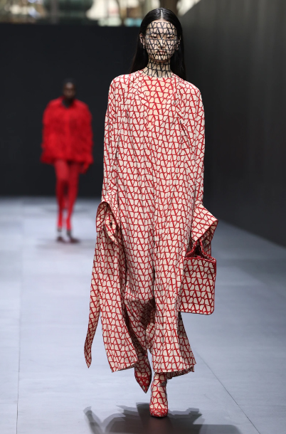 والنتینو همیشه به رنگ قرمز و جسارت و هیجان رنگ قرمز برای طرفئداران خود شناخته می شود و با توجه به تاکید و برجسته کردن این رنگ در کالکشن های خود به استقبال دیگر رنگ ها می رود ، اما این بار با توجه به تنوع بسیار زیاد المان ها و نقوش و فرم ها در طراحی ها از نوعی طراحی نقوش در پارچه استفاده کرده و به شکلی جذاب و متفاوت این کالکشن 2023 را بر روی کت واک آورده است